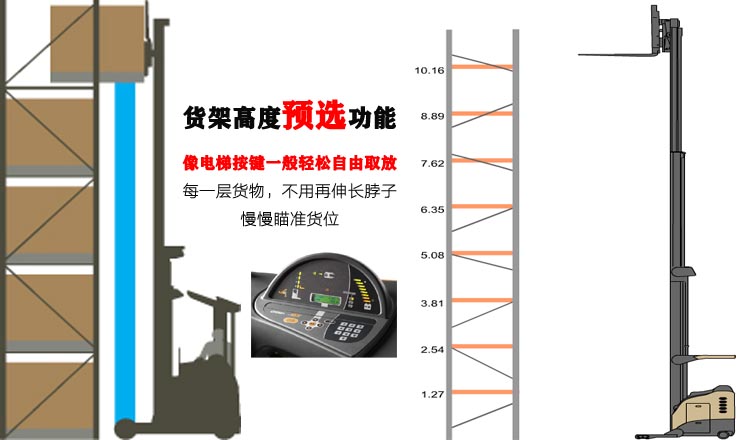 二、创新性的货架高度预选功能,高位取/放货轻松高效