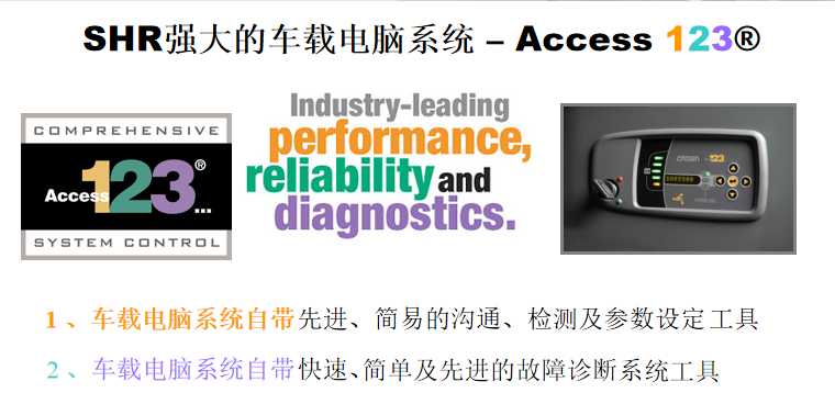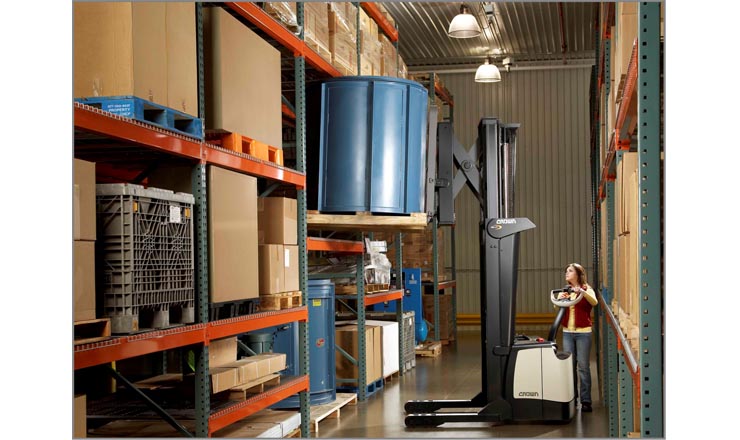 超小转弯半径——  Crown-科朗SHR系列步行前移式叉车,通过新型控制器和紧凑设计提升操纵性,具有前移式叉车中较小的转弯半径(1510mm)和较小的直角堆垛通道宽度(1.1m*1.1m托盘,直角堆垛通道宽度不足2.3米),超常狭小空间内也能方便使用。