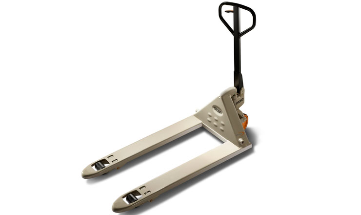手动托盘车是一种运输工具,又称地牛、手动叉车、手动托盘搬运车。生活中一般很常见,利用液压千斤顶来进行升降的一种方便的小巧的运输工具。地牛本身是比较细长的,运动起来很方便。有个手柄,两托木板的叉子。叉上货盘以后看起来体积会显得比较大了,一般能运个一、二吨左右的东西。