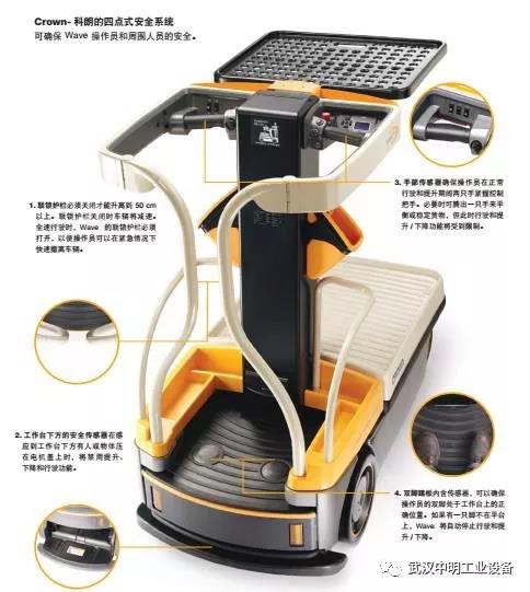 Crown-科朗叉车的四点式安全系统,可确保Wave多功能拣选车操作员和周围人员的安全。