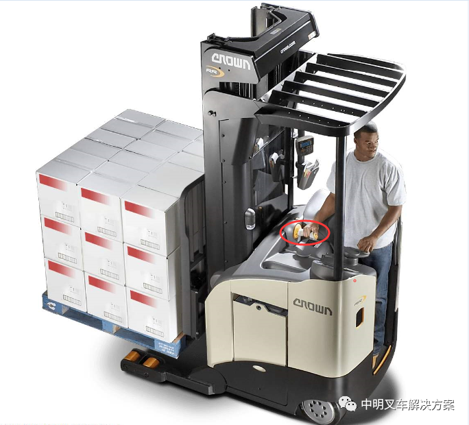 Crown-科朗设计的多任务控制手柄,可以让操作员同时执行多种任务,如叉车前进/后退、货叉升高/降低、前倾/后仰等,只需保持同一个姿势,就可完成多种任务!