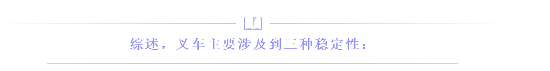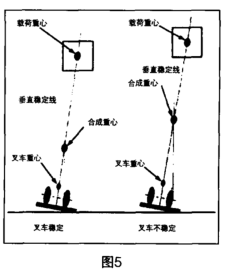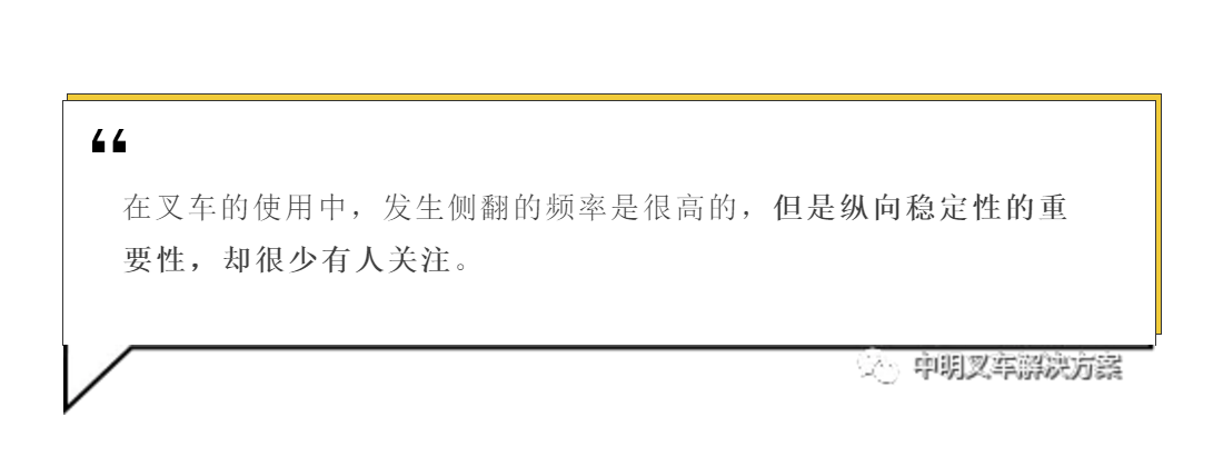 为了保持叉车的稳定,重心必须位于稳定三角形内,否则即为不稳定。当重心移动到驱动轴前面,则发生向前倾翻;当重心移动到两前轮中心和转向支点连线的外侧时,则发生侧翻。