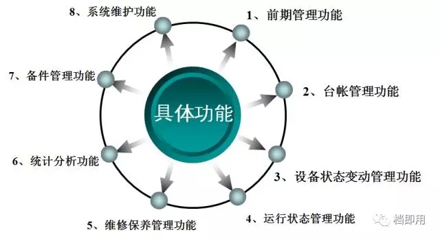 (1)前期管理功能: 设备前期管理是保持和提高其后续管理中设备技术状态和经济效果的关键,是搞好后续管理的基础。该部分主要包括设备规划、选型、安装、调试、验收、申购计划、申购合同、设备租赁、厂商信息等,其中设备规划部分主要包括年度设备使用计划、年度设备使用费计划、设备使用计划需求量等的制定。