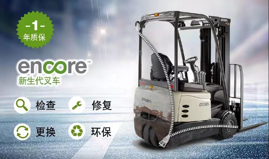 Crown-科朗叉车新上市的循环再造项目——Encore 新生代科朗叉车,采用系统化的方法对就叉车进行检查,维修或更换相关叉车配件,以生态环保为工作基础,回收利用材料,减少浪费,在保护环境的同时,为客户创造更大价值。