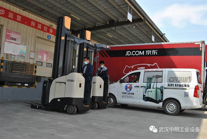 武汉中明多台双深度叉车交付京东,助力抗疫期民生物资搬运