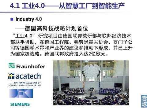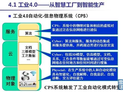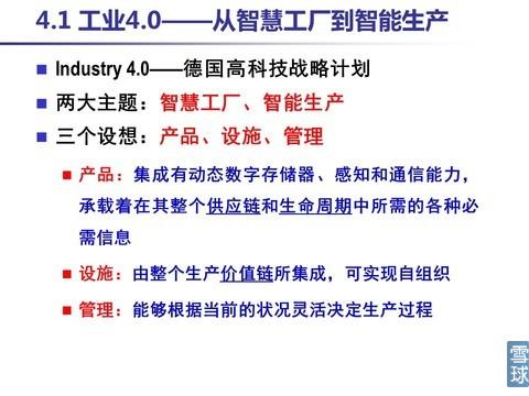德国学术界和产业界认为,“工业4.0”概念即是以智能制造为主导的第四次工业革命,或革命性的生产方法。该战略旨在通过充分利用信息通讯技术和网络空间虚拟系统—信息物理系统(Cyber-Physical System)相结合的手段,将制造业向智能化转型。